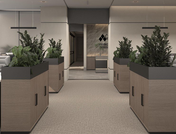 The MASCO Office project, located at Al Fardan Tower, Al Khobar, spans 875 m² and is currently ongoing. This Design Build – Shell & Core project involves designing and constructing office spaces with essential infrastructure such as HVAC, electrical systems, plumbing, and lighting, to create a fully functional office environment.